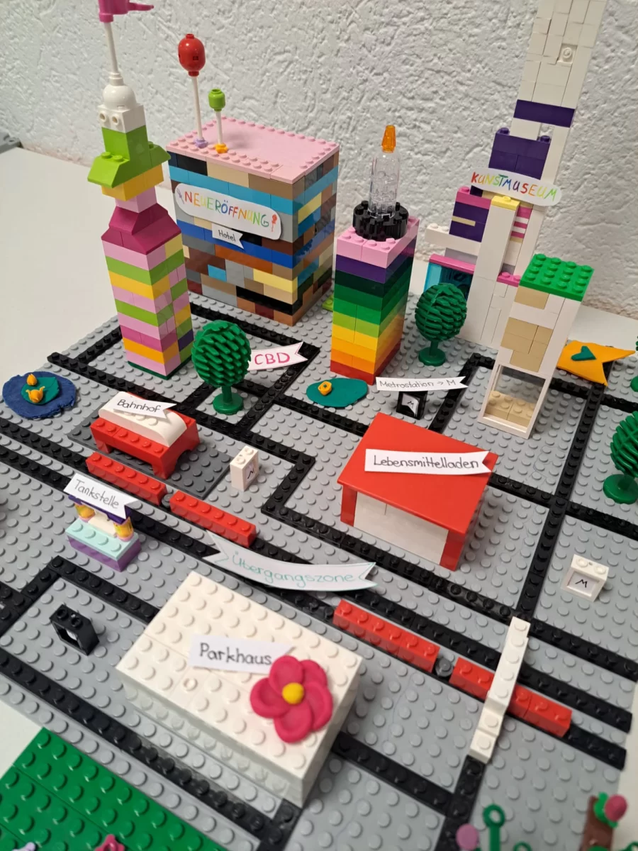 Im Rahmen des Geografieunterrichts haben die Schülerinnen und Schüler der 10OS eine kreative Aufgabe zum Thema "Nordamerikanische Städte" durchgeführt. Sie bauten eine Stadt aus LEGO-Steinen. Ziel war es, das typische Stadtbild nordamerikanischer Großstädte nachzubilden und gleichzeitig die verschiedenen städtischen Zonen zu berücksichtigen.