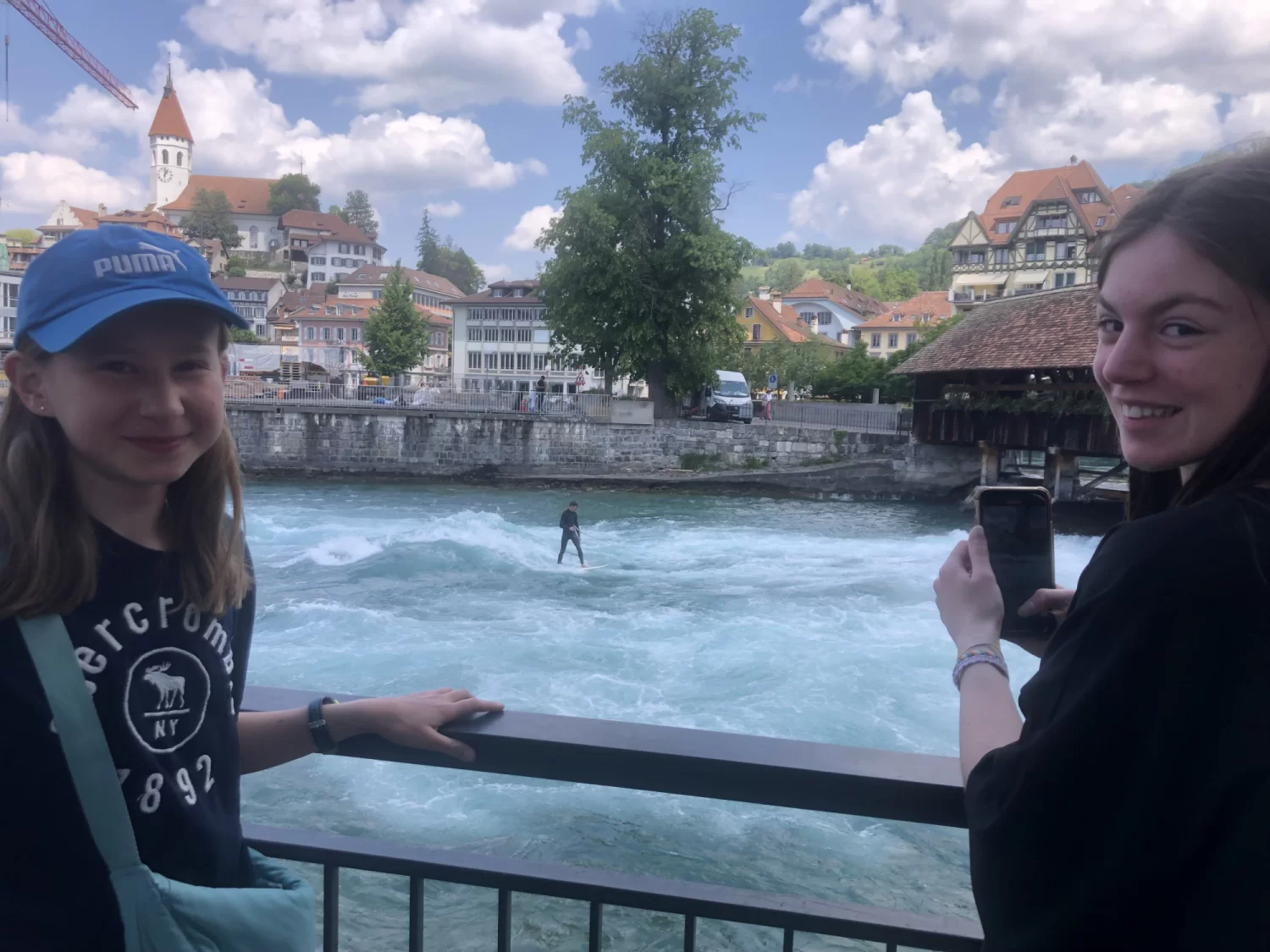 Wir haben einen Nachmittag in Thun mit Frau Fetzer gemacht (Deutsch als Fremdsprache). Zuerst haben wir die Schleuse besucht. Es hatte Personen, die in der Aare surften. Unglaublich! Nachher sind wir die Treppen zum Schloss von Thun hochgestiegen. Es war auch ein Museum. Wir haben es spontan besucht. Es war sehr spannend. Zum Schluss sind wir durch die Altstadt zum Bahnhof zurückgegangen und Frau Fetzer hat uns ein Eis gekauft. Wir danken vielmals Frau Fetzer für diesen Ausflug nach Thun, und auch für die DfF Stunden!