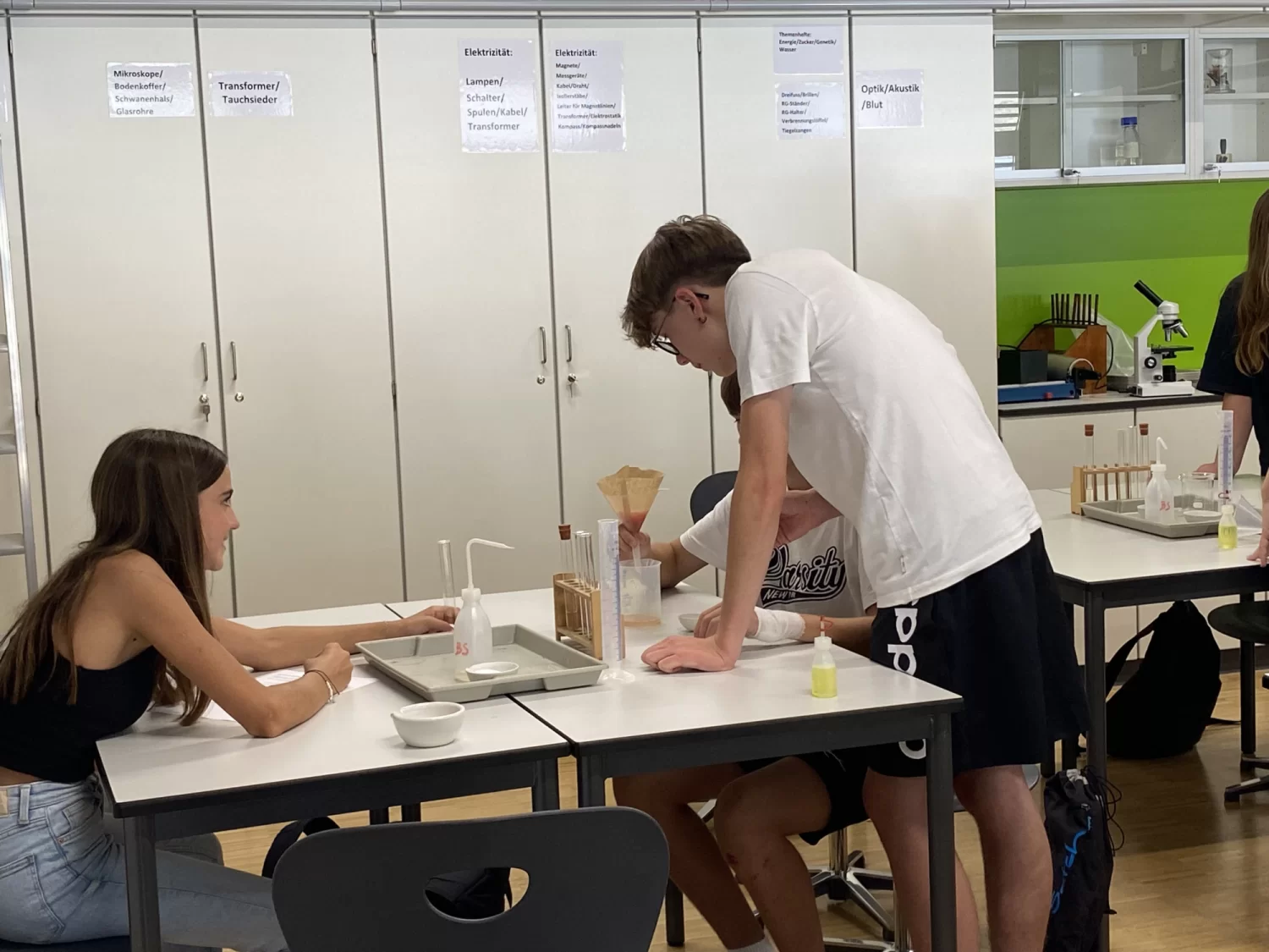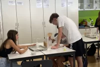Am Nachmittag desselbigen Tages bemühten sich die SchülerInnen unter der Leitung externer Referenten und der Schule mit der Extraktion von DNA aus einer Tomate und den Tücken der Raketentechnik und der selbstgebauten Raketen. Die praktischen Ateliers im Chemielabor und im Werkraum wurden umrahmt mit theoretischen Ateliers zur modernen Gentechnik und der geschichtlichen Entwicklung der Raketentechnik und Raumfahrt. Leider waren die Raketenstarts nicht mit hochfliegendem Erfolg gekrönt, die Freude und Begeisterung der SchülerInnen bei diesen theoretischen und praktischen Ateliers waren jedoch zu spüren.