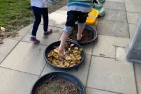 Zum Einstieg ins Thema Wald durften die Kinder an einem spannenden Sinnesparcours teilnehmen. An verschiedenen Posten konnten sie den Wald mit allen Sinnen entdecken – barfuss verschiedene Naturmaterialien spüren, Düfte erraten, genau hinschauen und aufmerksam lauschen. Besonders viel Freude bereitete der Barfussparcours, bei dem es viel zu staunen und zu lachen gab.