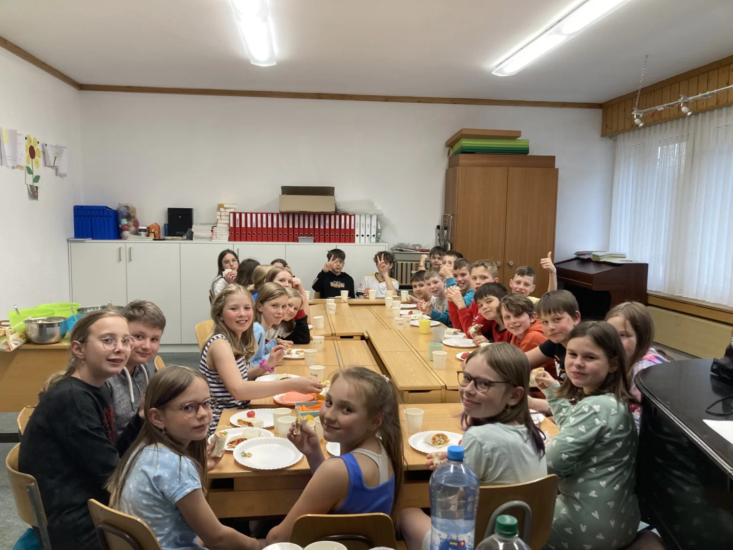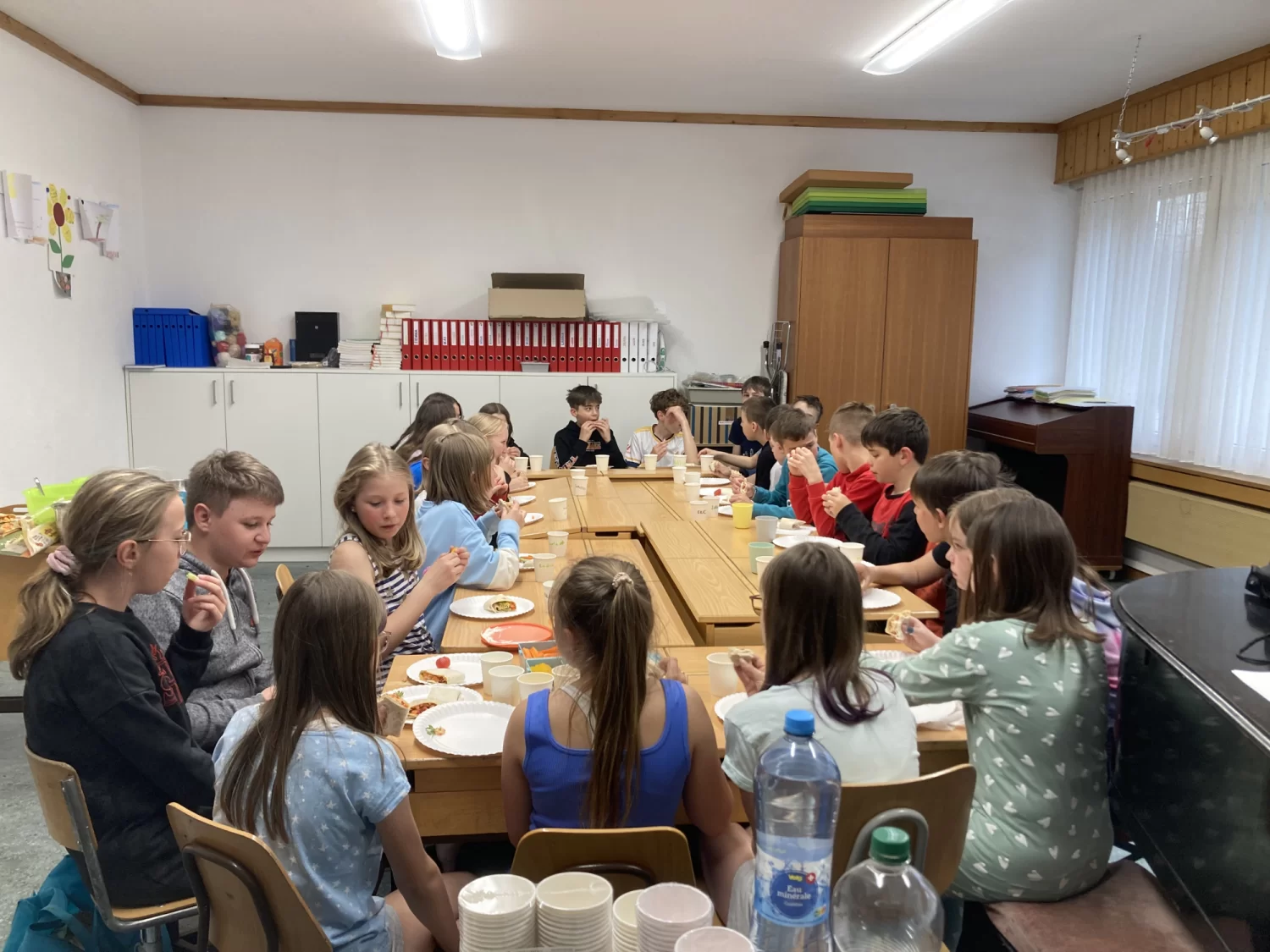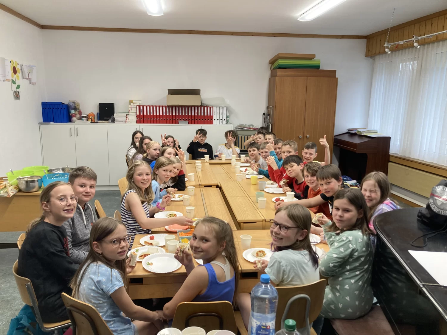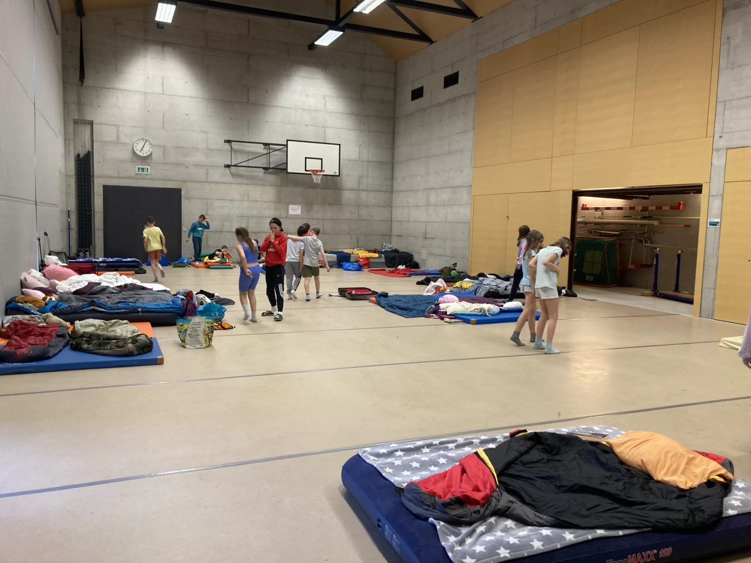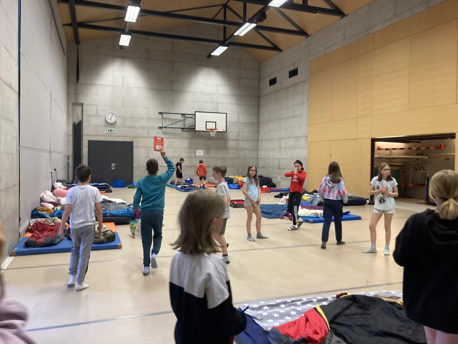 Nach dem Einrichten der Schlaflager in der Turnhalle, durften wir ein feines Abendessen geniessen, welches uns die Kinder der 5H & 6H am Nachmittag zubereitet hatten.