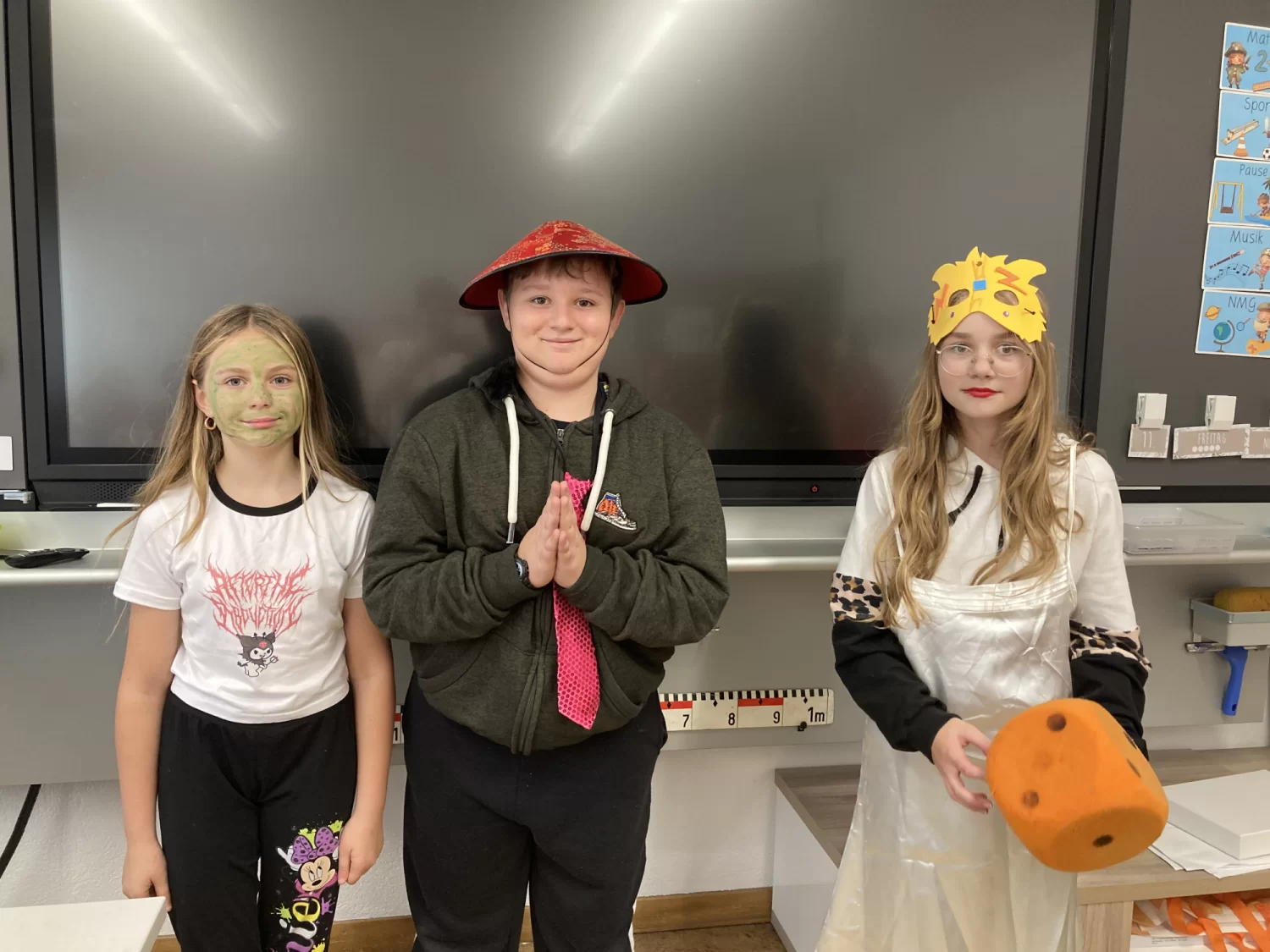 Es wurden Gegenstände bildnerisch verwandelt, Geschichten über Verwandlungen erzählt und schliesslich verwandelten sich auch die Kinder in die unterschiedlichsten Figuren.