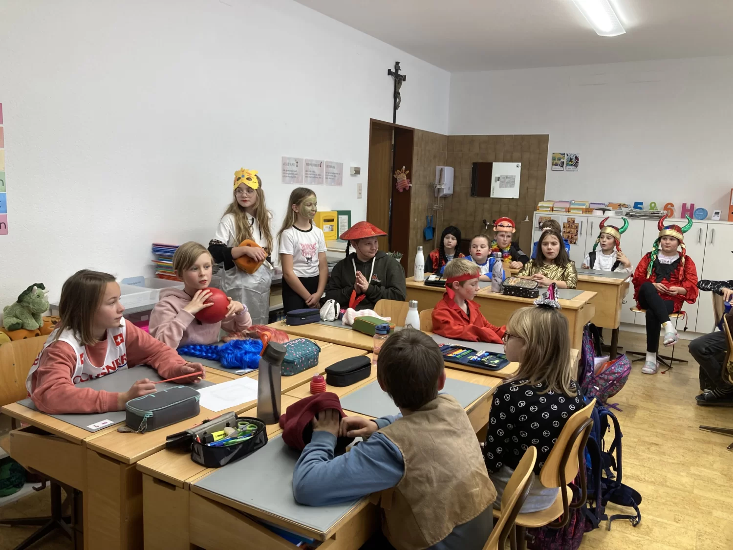 Passend zur schweizerischen Erzählnacht führten die PrimarschülerInnen in Unterbäch diverse Aktivitäten zum Thema "Verwandlung" durch.