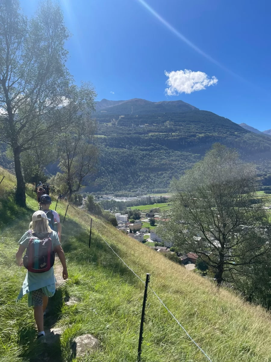 Bei schönstem Wetter machte sich die 1H - 8H aus Eischoll & Unterbäch mit der Luftseilbahn nach Raron. Dort startete der Fussmarsch hoch zur Burgkirche, auf den Heidnischbiel, nach St. German und über die NIWA zurück nach Raron.