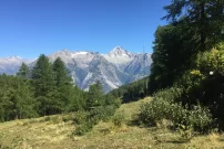 Mit der Sesselbahn ging's von Unterbäch hinauf in den Brand. Dort wanderten wir auf die Meigger-Suon bis zum Meiggerli, wo sich die Wege der grösseren und kleineren Kinder trennten. Der KiGa und die Unterstufe wanderten direkt zum Becky, die Oberstufe machte noch einen Rundweg ins untere Sänntum und von dort ebenfalls zum Becky.