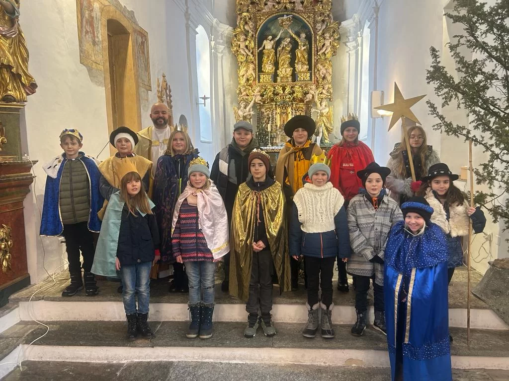 In Unterbäch ist das Sternsingen schon seit über 30 Jahren Tradition. Am Montag, den 9.1. und am Dienstag, den 10.1. sind 15 Kinder in drei Gruppen losgezogen. Am 9.1. war die Segnung der Kreiden und die Aussendung der Gruppen. Beim Sammeln fand ich es großartig, dass manche Leute sogar für uns gebacken haben. Am Abend hat uns Pfarrer Marek zu Dreikönigskuchen, warmem Kakao und Punsch eingeladen.