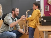 Am Nachmittag hatten wir eine fantastische Zeit, bei der die Musikgesellschaft von Eischoll den Kindern verschiedene Blasinstrumente vorgestellt hat - von Trompete, Waldhorn, Euphonium und Posaune bis hin zu Flöte, Klarinette und Saxophon, waren zahlreiche Instrumente vertreten. In den Augen der Kinder war die Aufregung unübersehbar, als sie die Gelegenheit erhielten, jedes Instrument kennenzulernen und sogar selbst auszuprobieren.