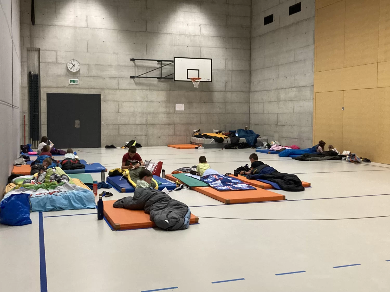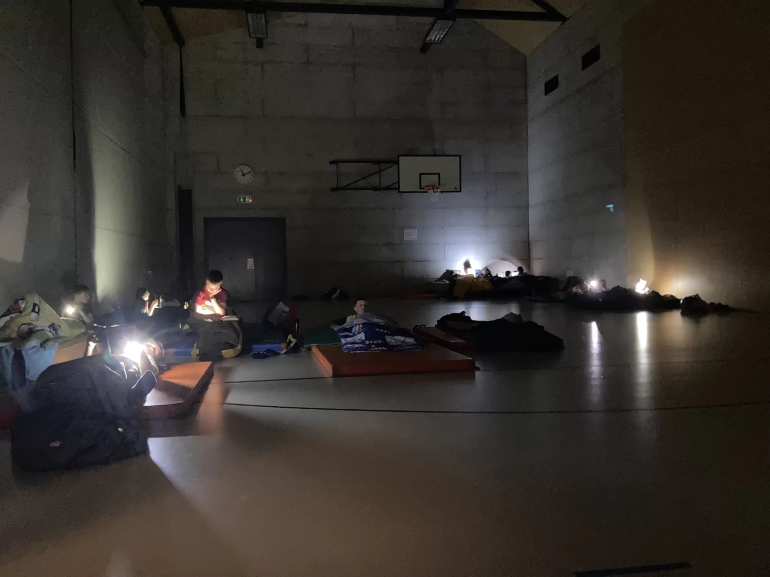 Dann ging es in die Turnhalle und alle durften noch eine Weile mit der Taschenlampe lesen, bevor dann die Nachtruhe galt.