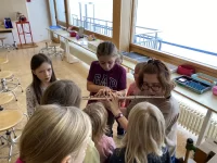 Zuerst gab es ein kleines Konzert, bei dem die Kinder die unterschiedlichen Klänge wahrnehmen konnten. Anschliessend durften die Kinder die verschiedenen Instrumentenateliers besuchen. Das Beste daran war, dass die Kinder die Instrumente selbst in die Hand nehmen und damit experimentieren konnten. Es war unglaublich zu sehen, wie sie mit Begeisterung und Neugier die Klänge dieser Instrumente erkundet haben. Insgesamt war es eine bereichernde Erfahrung, den Kindern die Welt der Musik näherzubringen und zu sehen, wie sie mit Freude und Begeisterung die verschiedenen Instrumente erkundet haben.