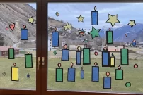 Zusätzlich gestalteten wir Fensterbilder. So entstand ein Fenster voller Kerzen, Sterne, Herzen und Perlen, das unser Klassenzimmer in der Adventszeit festlich schmückte.