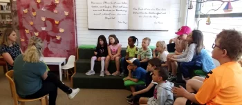 Der Besuch der Bibliothek Steg ist für die Kinder immer wieder ein großartiges Erlebnis, um die Welt des Lesens und der Bücher kennen zu lernen. Das Team der Bibliothek motiviert die Kinder, indem sie ihnen spannende Geschichten vorlesen und die Bibliothek erklären.