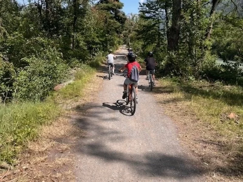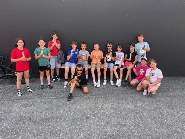 Deshalb fuhren wir anstelle des Joggens mit dem Rad nach Gampel: "Wir sind die Coolsten, wenn wir cruisen...!". Dort spendierte uns unsere Lehrerin ein Eis, welches wir uns bei der Hitze wahrlich verdient hatten.