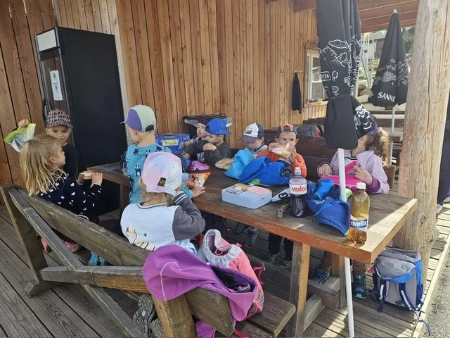 Nach einer kleinen Pause liefen wir zum grossen Spielplatz, wo wir gemeinsam das Picknick aus dem Rucksack genossen.