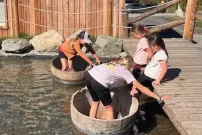 Nach der Mittagpause liefen wir weiter und kamen nach unserer 10-Kilometer-Wanderung zurück nach Bürchen, wo wir noch genug Zeit hatten, um auf dem Erlebnisland zu spielen. Wir fuhren Traktor, hüpften auf dem Bodentrampolin, liessen Kugeln rollen und machten Challenges im sehr kalten Wasser. Zufrieden und auch ein wenig müden fuhren wir mit dem Bus zurück nach Niedergesteln, wo wir um 16.20 Uhr beim Schulhaus eintrafen.