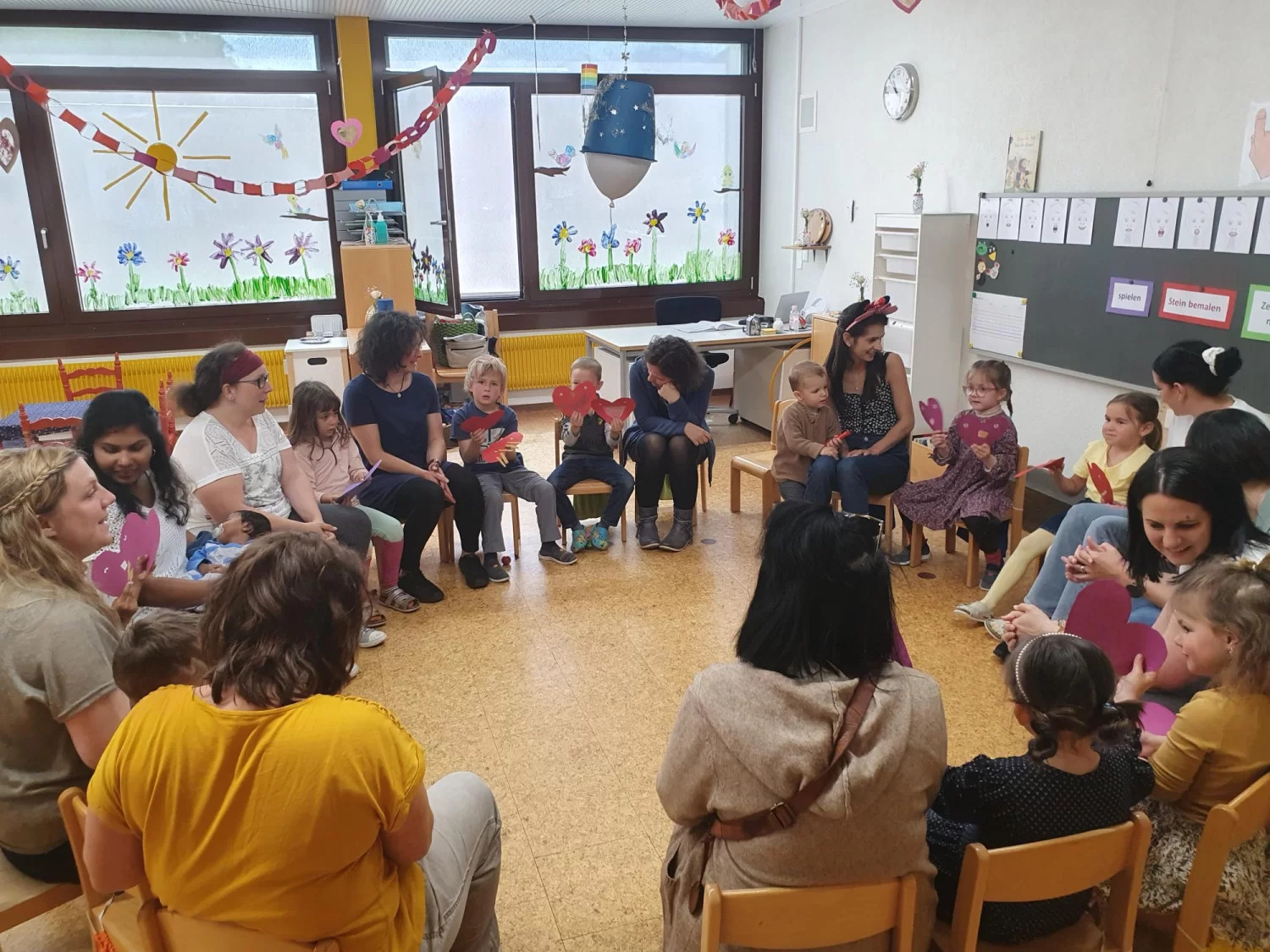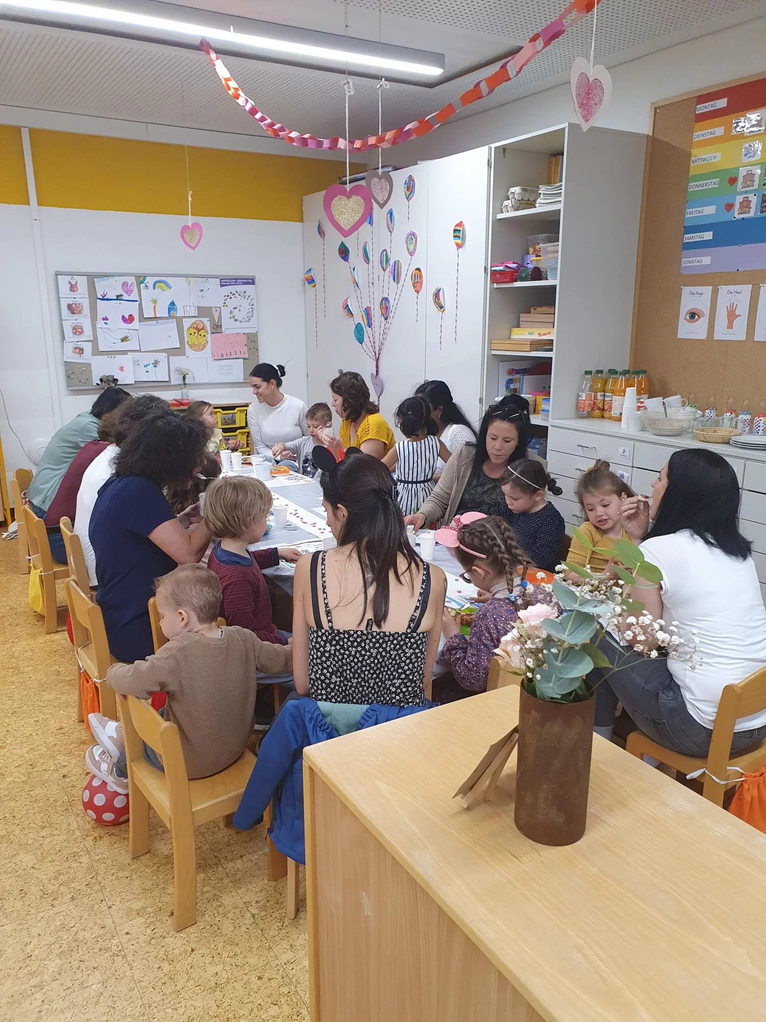 Für einmal haben die Kinder ihre Mama so richtig verwöhnt! Sie haben Frühstück serviert, die Hände massiert und für die Mama musiziert. Gemeinsam wurde dann noch gemalt und gespielt und als Abschluss wurde noch die Muttertags - Hängebombe zum Platzen gebracht.