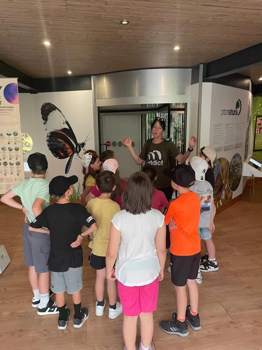 Am Freitagmorgen um halb Acht trafen wir uns alle in Raron. Wir fuhren mit dem Zug bis nach Kerzers. Da war das Papiliorama, wir haben uns eingecheckt und sind durch das Papiliorama gelaufen. Im Papiliorama sahen wir viele Schmetterlinge und auch Kolibris. Im Noctorama war es Nacht – Faultiere und andere Tiere wie das Erdferkel waren unterwegs. Im Jungle-Trek sahen wir Schlangen und lustige Schrecken. Mittags versammelten wir uns auf dem Spielplatz. Wir assen Picknick und spielten auf dem Spielplatz. Es gab einen Turm, da gingen wir auch hinauf. Ausserdem hatte es einen Streichelzoo und einen Kletterpark.