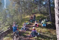 Wir mussten um 09.00 Uhr auf dem Schulhausplatz sein. Dann kam der Bus und holte uns ab. Wir kamen um 09.20 Uhr im Pfynwald an. Unser Führer Anselmo begleitete uns auf unserer Exkursion, passend zu unserem Jahresthema Wald. Mit Anselmo machten wir verschiedene Spiele im Wald. Eines ging so: Es waren Schlangenbilder auf dem Boden. Ein Kind lief mit verbundenen Augen durch den Parcours und durfte auf kein Bild stehen. Es wurde von den anderen Kindern gelotst. Wir mussten dann auch noch einen Bach auf Steinen überqueren. Natürlich liefen wir auch und sahen einige Tiere. Mittags machten wir Picknick auf dem Spielplatz. Nachmittags gingen wir noch einmal in den Wald. Später holte uns der Bus wieder ab.
