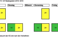 Das hat zur Folge, das am Dienstag Vormittag und am Mittwoch nicht unterrichtet wird. Die SuS 1H besuchen den Unterricht am Montag Vormittag erst nach den Herbstferien.