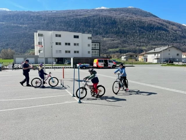 Bevor die Polizei kam, wurden alle Fahrräder der Kinder kontrolliert und repariert. Danach fuhren die Kinder einen Parcours, welchen alle mit Bravour meisterten. Nun dürfen auch die 3. Klässler mit dem Fahrrad zur Schule kommen.