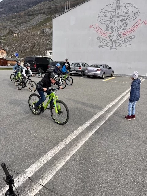 Am 26.03.2024 durften wir alle das Velo mitnehmen. Nach der Pause konnten wir unsere Velos holen und machten einen Outfit-Check. Zuerst hatten wir geschaut, dass der Helm sich nicht zu viel bewegt. Dann haben wir noch überprüft, dass keine Kleidung in die Kette gelangen kann. Dann ging es schon los. Zuerst waren alle zusammen und wir fuhren in einem Kreis und mussten z.B. unsere Hand ausstrecken und in der Mitte einem Mann abklatschen. Einmal mussten wir auch den Arm und den Fuss abklatschen. Später wurden wir in zwei Gruppen geteilt. Wir mussten zuerst durch Ketten fahren und nur geradeaus schauen. Das war gar nicht so einfach. Als das vorbei war, mussten wir einen kleinen Kurven Parkour fahren. Wir mussten immer um ein Hütchen fahren. Wenn man das gut konnte mit dem vorderen Rad um das Hütchen und mit dem hinteren nicht (das war noch schwieriger). Als man das auch nicht so schlecht konnte, konnte man noch das Velo ein bisschen nach unten drücken. Irgendwann sagten sie dann das wir wechseln. Also gingen wir zu den anderen Posten. Wir mussten z.B. nur mit der vorderen Bremse bremsen und einmal nur mit der hinteren. Einmal mussten wir sogar einen „Stopie“. Als das beendet war, mussten wir zusammen kommen und wir bedankten uns noch bei Ihnen und dann war es schon fertig.