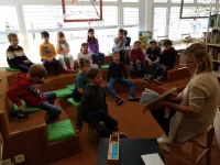 Die 3 und 4 HarmoS der Schule Niedergesteln besuchte die Bibliothek in Steg. Die Kinder hatten eine Menge Spass am Lesen und schieben des "Bücherwagens"! ;-)
