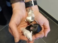 Am Montag, den 6. Dezember haben wir 3 Mäuse bekommen, eine weisse, die ist 8 Wochen alt und heisst Belle, dann haben wir noch eine weiss-braun gefleckte. Das ist d...
