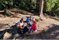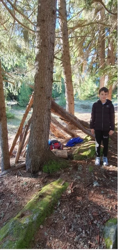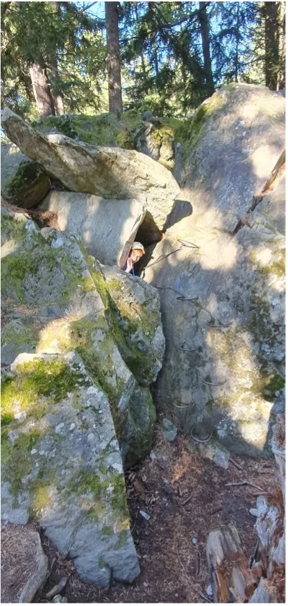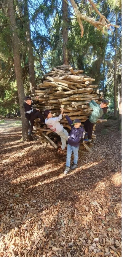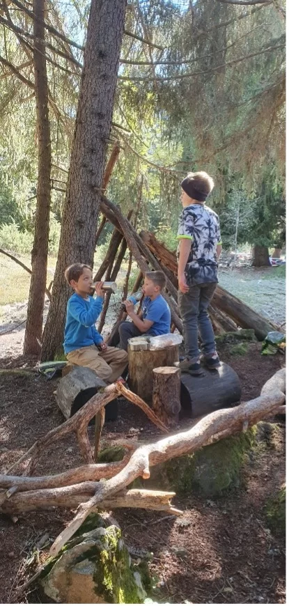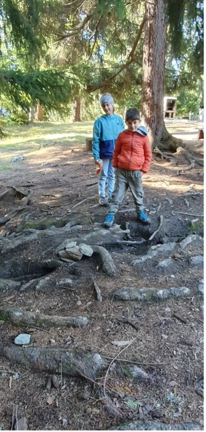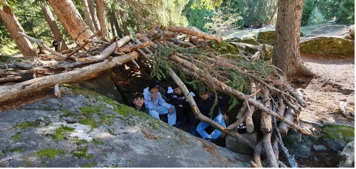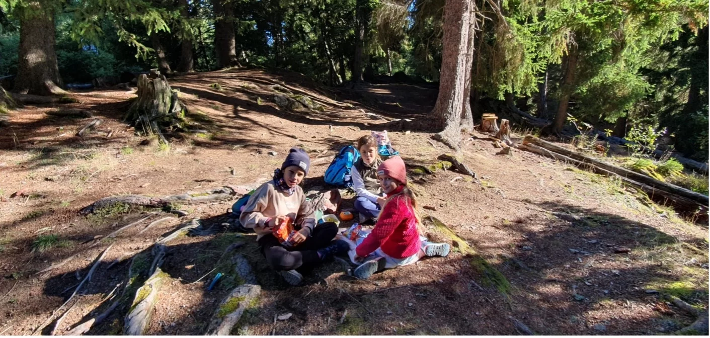 Am Montagmorgen ging es für uns früh los, auf den Weg in den Zauberwald nach Ernen. Dort angekommen ging das Abenteuer los. Auf den Spuren des Eichhörnchen Brüna durchliefen die Kinder den Zauberwald. An verschiedenen Stationen konnte so einiges erlebt werden. Vom Klettern hoch und runter von Felswänden, bis „Bäjä“ in einer Seilbahn transportieren, hatte es alles dabei. Den Kindern machte es vor allem am meisten Spass sich in Geheimhöhlen aus Holz und Ästen zu verstecken. Dort getarnt nahmen sie auch ihre Mittagspause ein.
