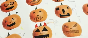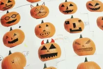 Die Oktober-Postkarte zeigt einen Kürbis. Die Sechstklässlerinnen und Sechstklässler konnten diesen als schauerlichen oder lustigen Halloween-Kürbis gestalten.