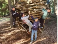 Am Montagmorgen ging es für uns früh los, auf den Weg in den Zauberwald nach Ernen. Dort angekommen ging das Abenteuer los. Auf den Spuren des Eichhörnchen Brüna durchliefen die Kinder den Zauberwald. An verschiedenen Stationen konnte so einiges erlebt werden. Vom Klettern hoch und runter von Felswänden, bis „Bäjä“ in einer Seilbahn transportieren, hatte es alles dabei. Den Kindern machte es vor allem am meisten Spass sich in Geheimhöhlen aus Holz und Ästen zu verstecken. Dort getarnt nahmen sie auch ihre Mittagspause ein.