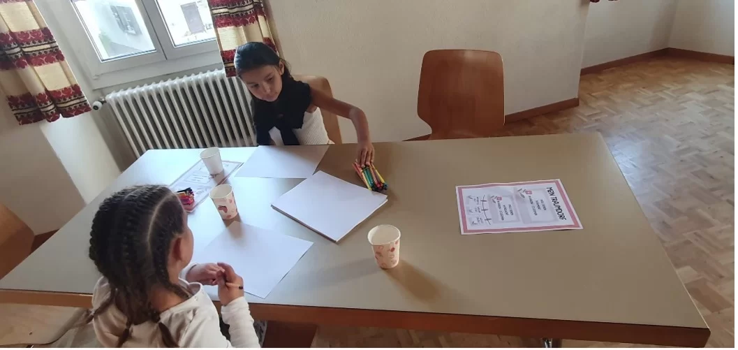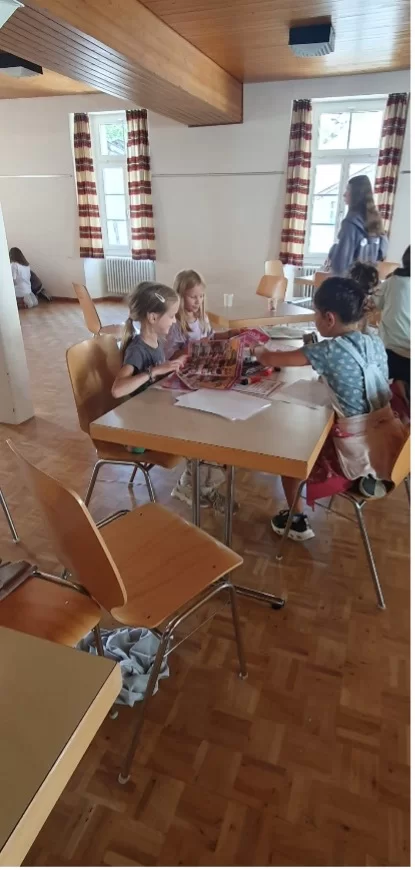 Mit dieser Geschichte starteten wir unseren Peace-Day. Unsere Kommunikation einmal genauer betrachten, überlegen in welchen Momenten wir wie ein Wolf sprechen und wann wir es schaffen, grossmütig und mit viel Herz wie die Giraffe Lilo zu kommunizieren. Nach einem gemeinsamen Start arbeiteten wir in verschiedenen Ateliers, wo wir noch tiefer in eine gute und gewaltfreie Kommunikation eintauchten. Am Nachmittag gab es zum Abschluss dann noch die Komplimentebändeli, welche uns diesen schönen Tag nie vergessen lassen.