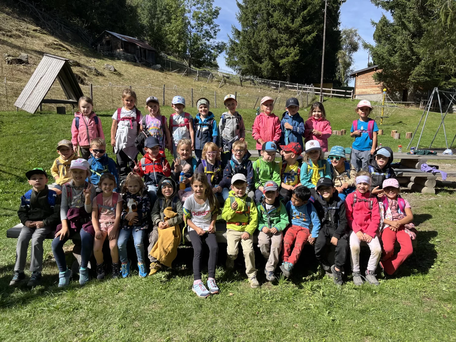 Am Dienstag, 16. September, fand unser gemeinsamer Herbstausflug mit beiden Kindergartenklassen von Raron statt. Bei schönem Wetter machten wir uns früh am Morgen gut gelaunt auf den Weg – ein Tag voller Abenteuer stand bevor!