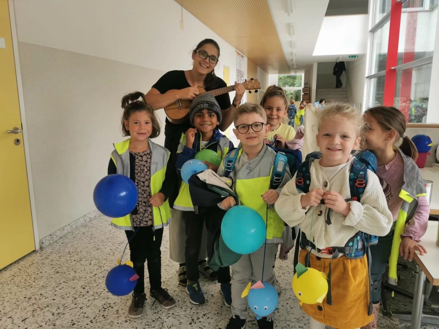 Der zweite Buchstabe der uns in diesem Schuljahr begegnet ist der Ll. Ganz bald schon war klar, dass wir heute etwas mit einem Luftballon machen werden. Ganz passend zu unserem Jahresthema entstanden dann aus vielen kunterbunten Ballonen viele fargbige Fische. Unser Schulzimmer verwandelte sich schnell einmal in ein Aquarium und wir hatten alle ganz viel Freude, als wir die Vielfalt an farbigen Fischen sahen. Am Schluss gab es noch ein kleines Ständli von Frau Feller und dann wurden alle Kofferkinder mit ihren bunten Luftballonfischlis nach Hause entlassen.