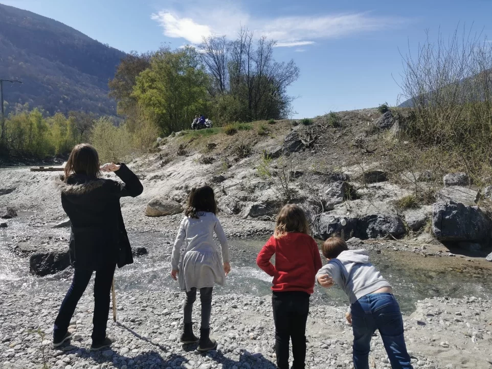 Denkt man an den Bastelunterricht, so denkt man an ein Bastelzimmer mit jeder Menge Material, Techniken und natürlich an ein schönes Endprodukt. An diesem Freitagnachmittag wurde dieser „normale“ Bastelunterricht auf den Kopf gestellt und kurzum nach draussen verlegt. Wo das Bietschiwasser in die Rhone mündet, haben wir uns zum Steinstrand begeben. Das Wetter war auf unserer Seite :).