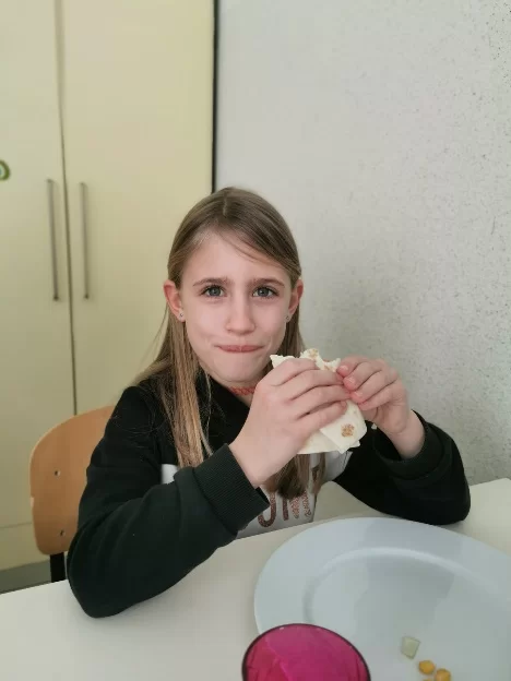 Ganz im Sinne von "¡Viva México!", verbrachten Andres, Lena, Elin, Samira und ich ein super leckeres Mittagessen in der Schule. Fajitas stand auf dem Menuplan. Die Vorbereitungen liefen auf Hochtouren. Es wurde geschnippelt, genascht, Tisch gedeckt und gegen Schluss waren wir sogar etwas ungeduldig, weil wir kaum abwarten konnten, die leckeren Fajitas zu probieren.