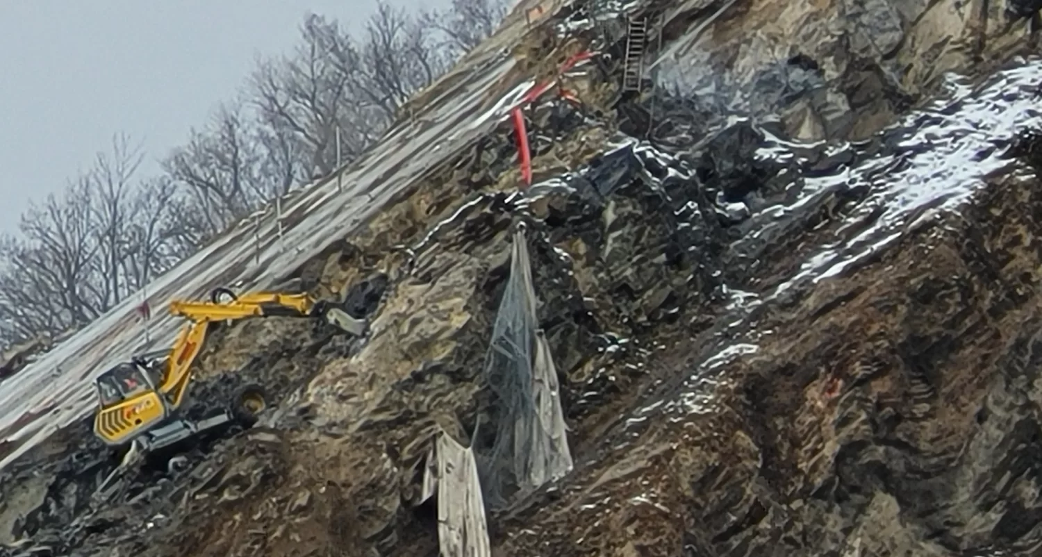 Einige schwindelfreie Männer arbeiten täglich im Blasbiel, um die Sicherheit der Bevölkerung zu gewährleisten. Seit der Sprengung sind auch zwei kleine Bagger am Werk. Sie lösen Steine, die mit viel Lärm gegegen ds Bietschi rollen.