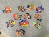 Sie fertigten eine Pinnwand an. Passend zum Jahresthema wurde die Vorlag eines Fisches genommen. Die Schuppen der Fische wurden aus Korken gebastelt.