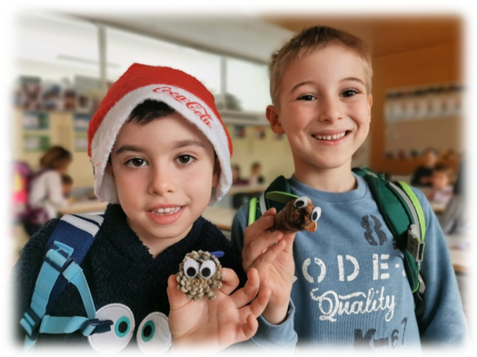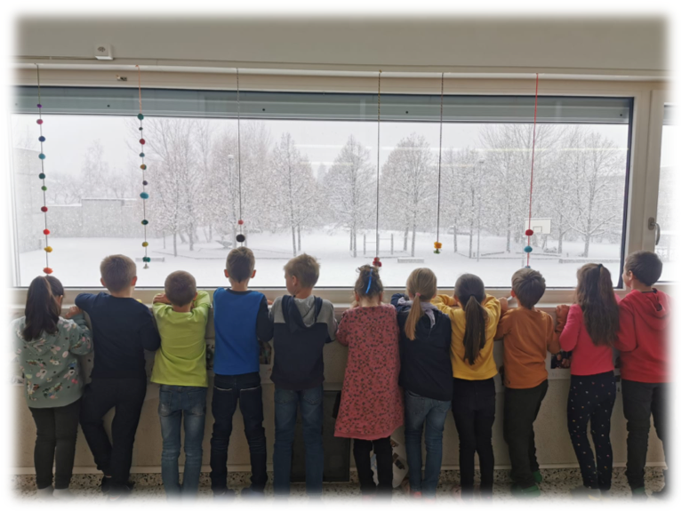 Als hätten wir den Schnee für die Adventszeit bestellt, staunten wir am 1. Dezember nicht schlecht, als wir den grossen, weissen Schneeflocken zuschauen konnten, wie sie sanft zur Erde gleiteten. Im Klassenzimmer brannten die Kerzen vom Adventsgesteck, in der Luft lag ein feiner Zimtduft und die Augen von Emma und Juna – unseren Adventskindern - strahlten um die Wette, als sie das kleine Säcklein mit Schokolade und Seifenblasen öffneten.