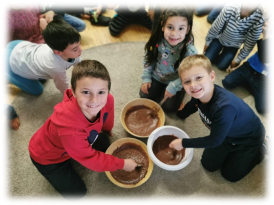 Was uns wohl diese Woche für ein neuer Buchstabe erwartet…? Ganz gespannt waren die Kinder der 3H und die Freude war natürlich riesengross, als sie erfuhren, dass wir passend zum „P“ eine Puddingparty feiern. Doch bevor geschlemmt werden durfte, hiess es: Ran an die Arbeit… Milch abmessen, gut verrühren, aufpassen, dass unser Teppich sauber bleibt und natürlich zwischendurch immer wieder kosten, ob der Pudding auch wirklich gut schmeckt… Nachdem wir das Dessert dann in den grössten Kühlschrank stellten, den wir fanden (ein verschneiter Balkon ist so toll…), konnten wir dann nach der Pause mit dem Fest beginnen. Und wir sind uns einig: Unser Pudding ist der Hit!