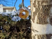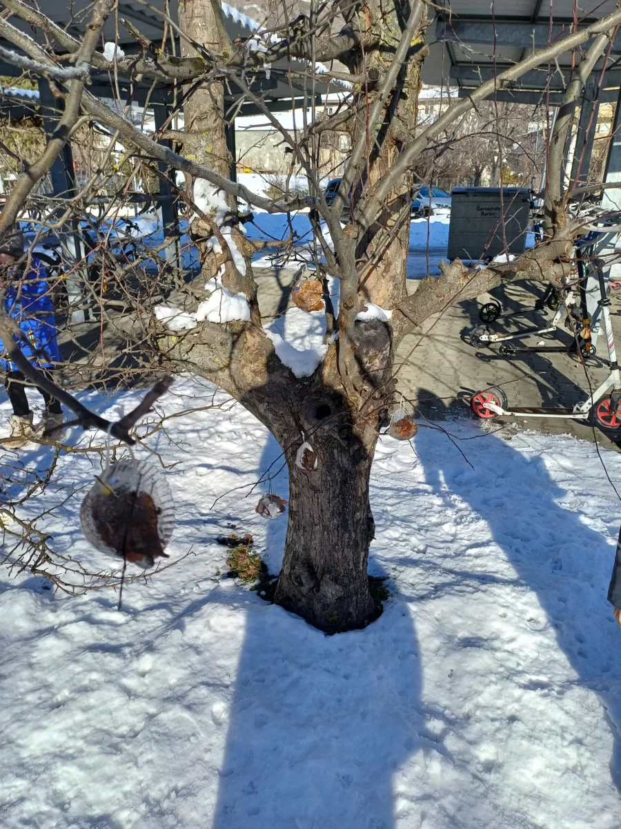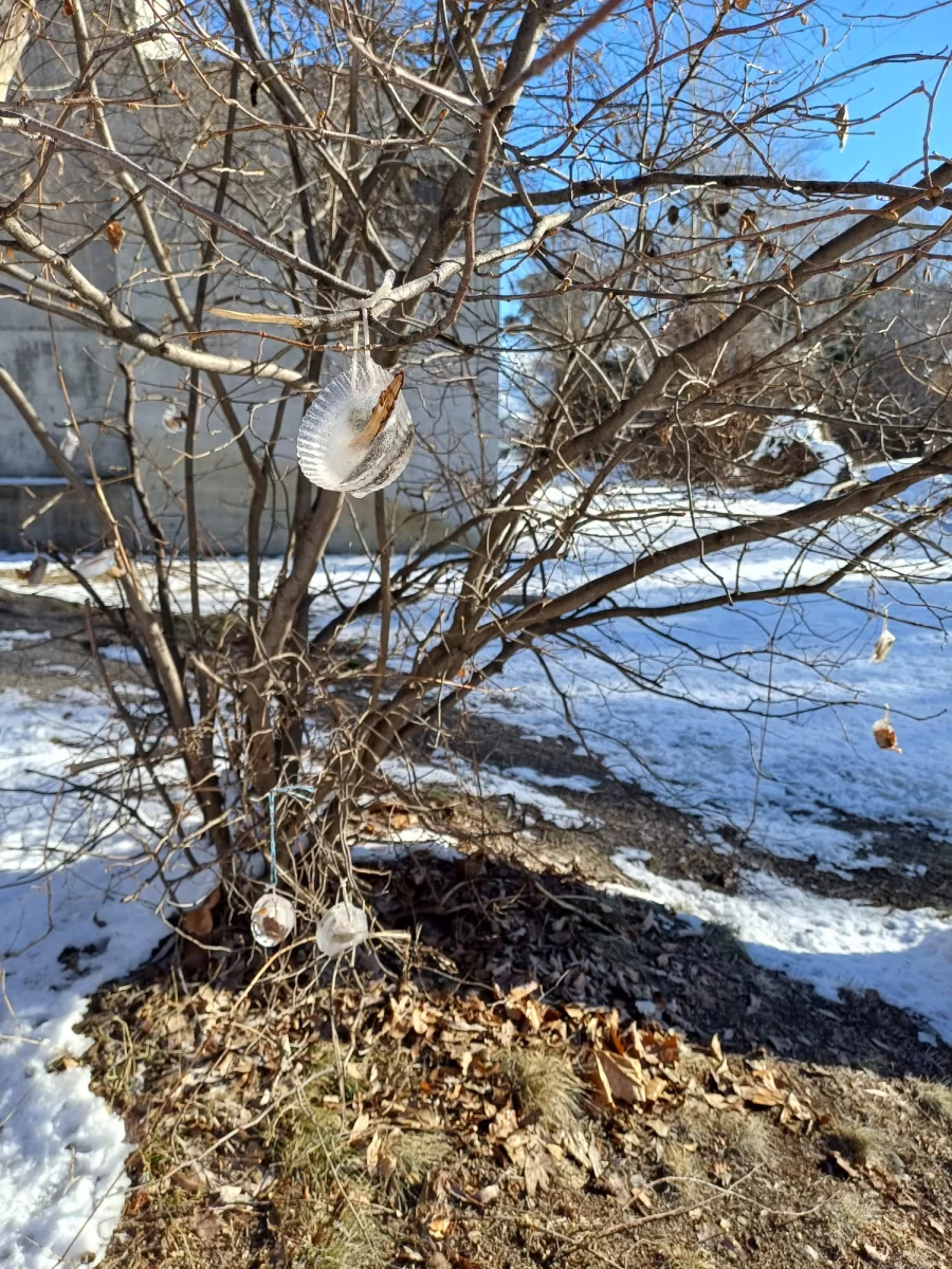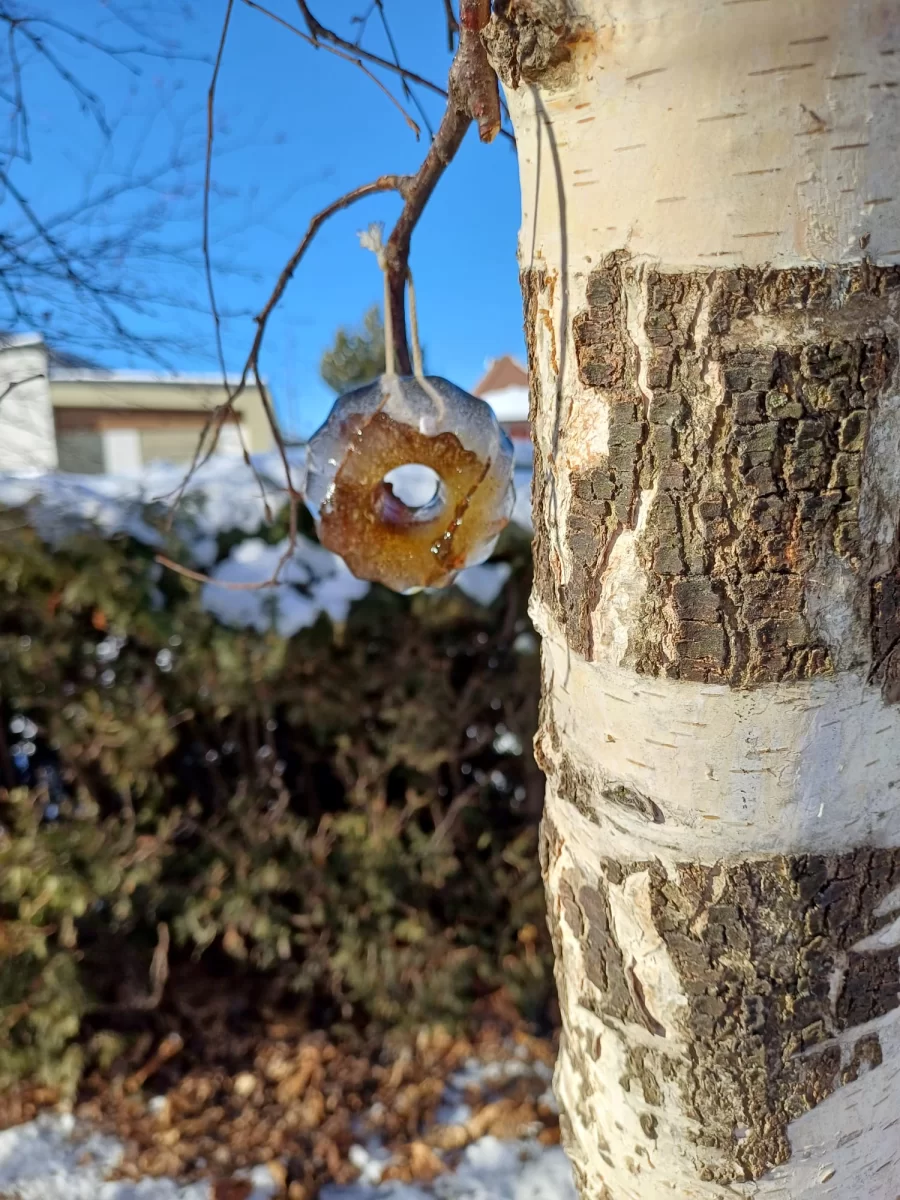 Schließlich wurden die Eisperlen an den Bäumen auf unserem Pausenplatz aufgehängt.