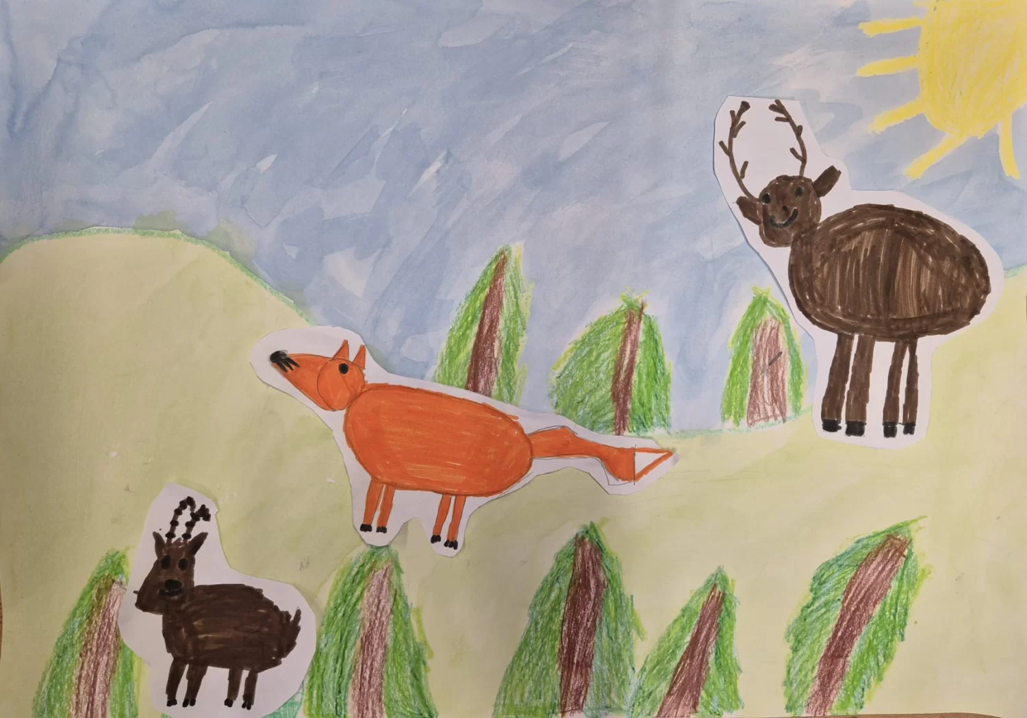 Die jungen Künstlerinnen und Künstler haben sich mit Begeisterung an die Arbeit gemacht. Ob Füchse, Hirsch oder Reh – jedes Bild zeigt nicht nur die kreative Begabung der Kinder, sondern auch ihre Liebe zur heimischen Tierwelt. Jedes Kunstwerk wurde mit großer Sorgfalt gestaltet.