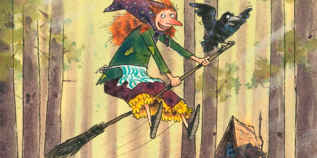 Die kleine Hexe, deren sehnlichster Wunsch es ist, mit den großen Hexen auf dem Blocksberg herumfliegen zu dürfen, lebt mit ihrem sprechenden Raben Abraxas in einem kleinen, windschiefen Häuschen im Wald. Beim Versuch, sich in der Walpurgisnacht unerlaubt den anderen Hexen anzuschließen, wird sie entdeckt und ihr Hexenbesen zur Strafe verbrannt. Es wird ihr aber in Aussicht gestellt, an der nächsten Walpurgisnacht teilnehmen zu dürfen, wenn sie es bis dahin zu einer guten Hexe gebracht habe.