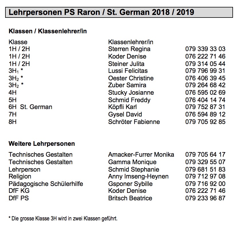 Am Freitag, 22. September 2017 trafen sich über 500 Kinder aus der Region in der Felsenkirche von Raron, um sich ein Konzert anzuhören. Der Karneval der Tiere von Camille Saint-Saëns wurde aufgeführt. Es spielten ein Cello (Benjamin Heim), die Orgel (Ursula Heim) und eine Oboe (Martin Stöckli). Zwischen den 14 Stücken redete eine Erzählerin, Ida Häfliger. Die gespielte Musik wurde von Zeichnungen (Jon Wirthner) dargestellt. Das Konzert war für die meisten Kinder spannend mitzuerleben. Leider waren nicht alle Zuhörer still. Nach 45 Minuten schallte verhaltener Applaus durch die Felsenkirche. Als das Fest im Karneval der Tiere zu Ende war, zogen Löwe, Schildkröten, Elefanten, etc. heim auch die Kinder machten sich auf den Weg nach Hause.