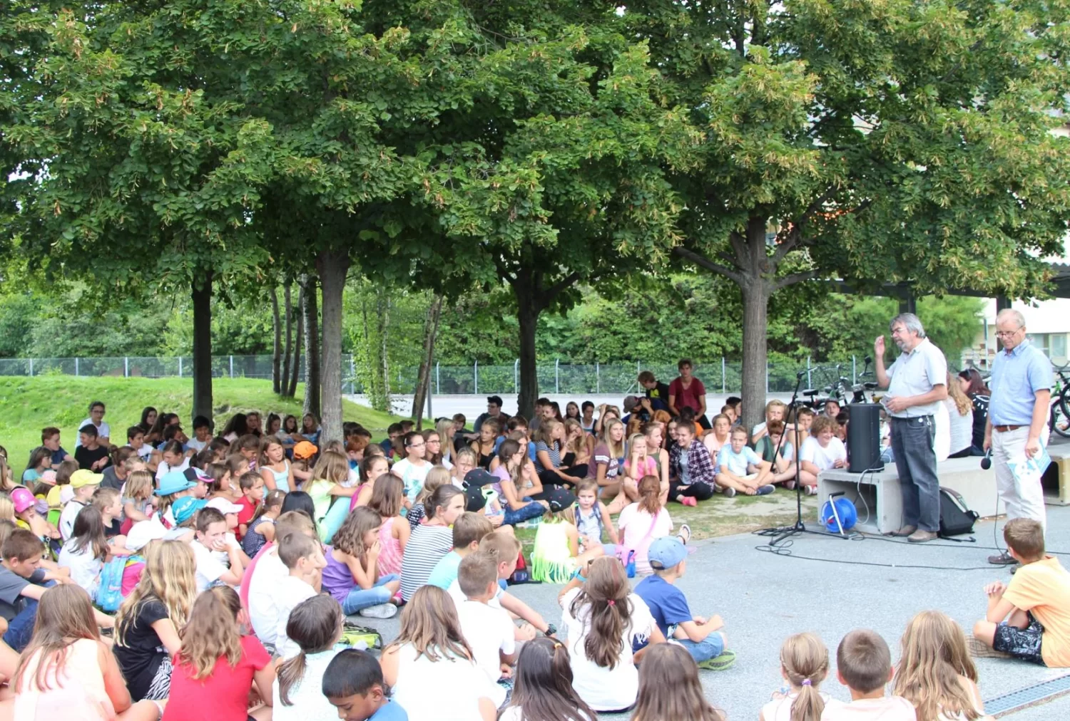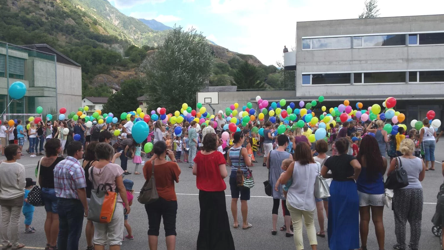 Am 17. August 2016 trafen sich alle Schüler der Region auf dem Pausenplatz in Raron zum gemeinsamen Schulstart.