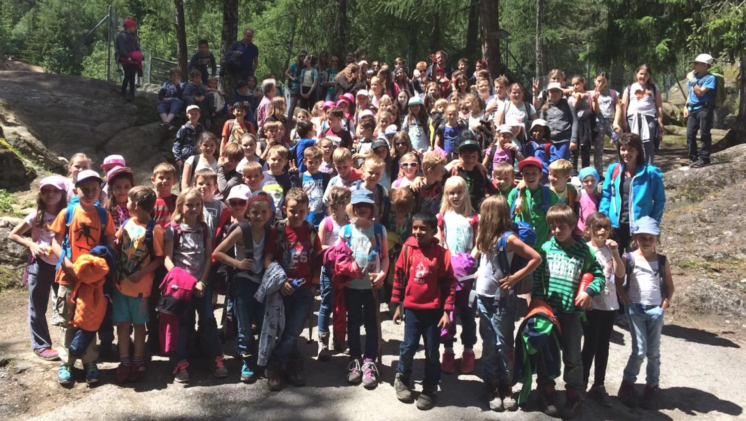 Nach einer unterhaltsamen Fahrt sind wir mit 3 Bussen im regnerischen `Les Marécottes` angekommen. Allmählich hat der Himmel aufgerissen und die Kinder erkundeten die vielen spannenden Tiere. Wildkatzen, Wölfe, Wildschweine, Bären, Ponys und Steinböcke verzauberten unsere Schüler und Schülerinnen. Die kleinen Naschereien in den Rucksäcken der Kinder versüssten ihnen den Tag. Am Nachmittag erlaubten die etwas wärmeren Temperaturen der 5. und 6. Klasse im kühlen See schwimmen zu gehen. Mit vielen neuen und interessanten Eindrücken im Gepäck sind wir gegen 16.15 Uhr glücklich und zufrieden in Raron eingetroffen.