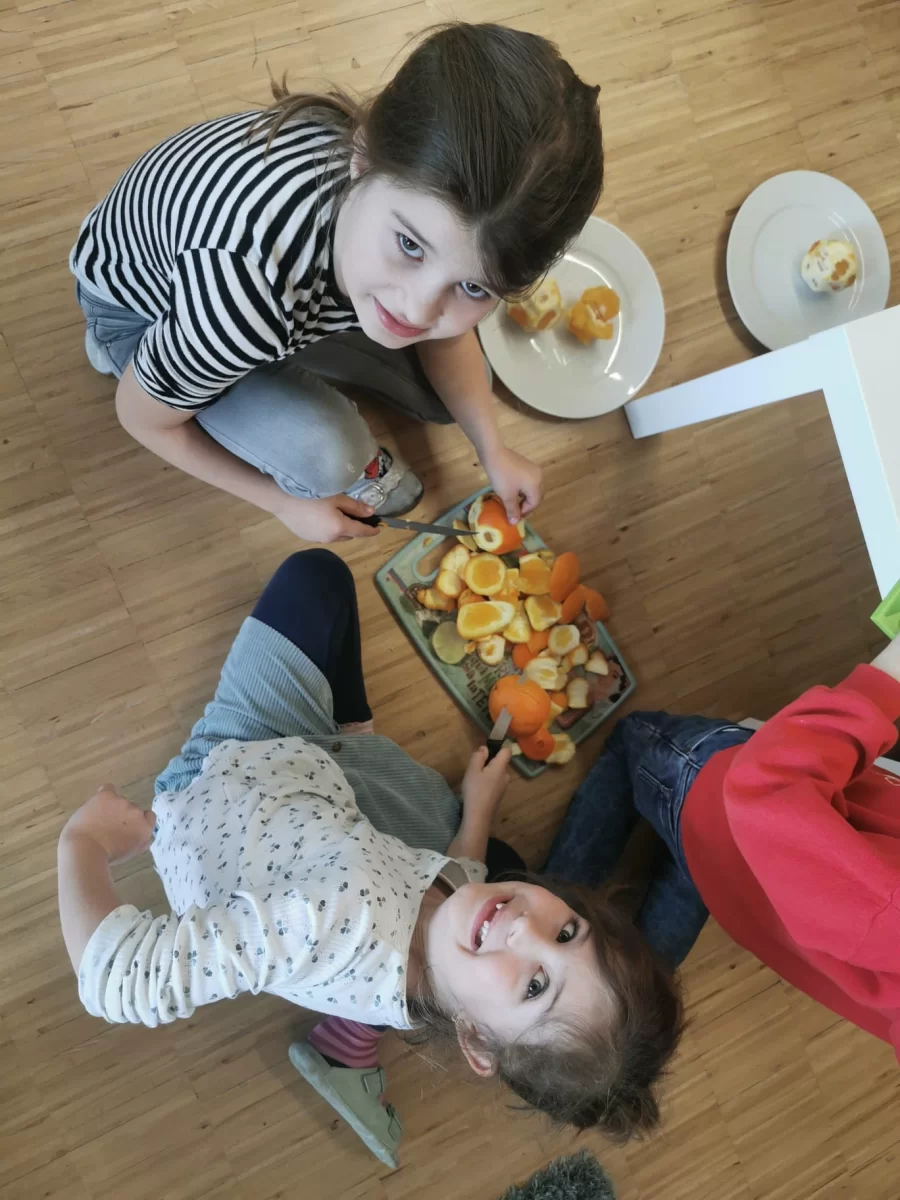 Kurz vor der Pause hatten wir dann doch etwas Stress und so waren wir sehr, sehr froh, dass Frau Schaller uns beim Bereitmachen der Spiessli half.
