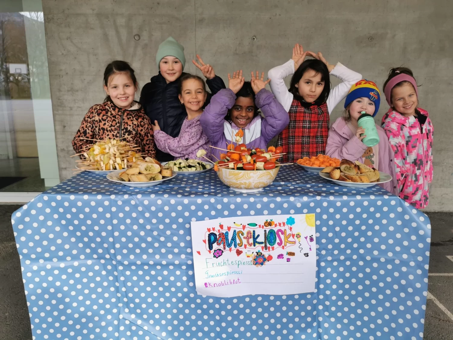 Der Pausenkiosk wurde zu einem vollen Erfolg. Alle freuten sich über die feinen Sachen, welche die Kuschels servierten.