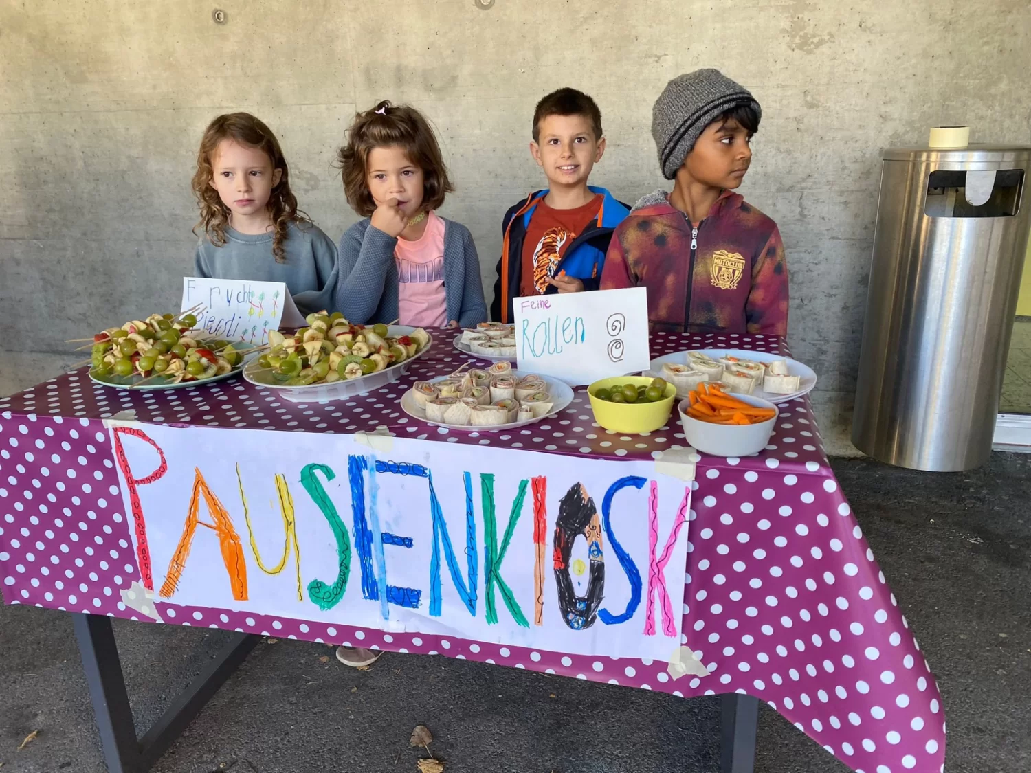 Die Vorbereitungen für den ersten Pausekiosk waren bereits im vollen Gange. Schon Tage zuvor machte sich die Miesmuschelklasse gemeinsam mit Frau Feller Gedanken darüber, was sie den Schülerinnen und Schülern der Primarschule Raron gerne servieren würden. Viele tolle Ideen wurden gesammelt und dann ging es ins Volg, wo alle fleissig beim Einkauf mithalfen. Der Einkaufskorb wurde gefüllt mit den leckersten Sachen und alle Miesmuscheln freuten sich riesig auf ihre grosse Pause.